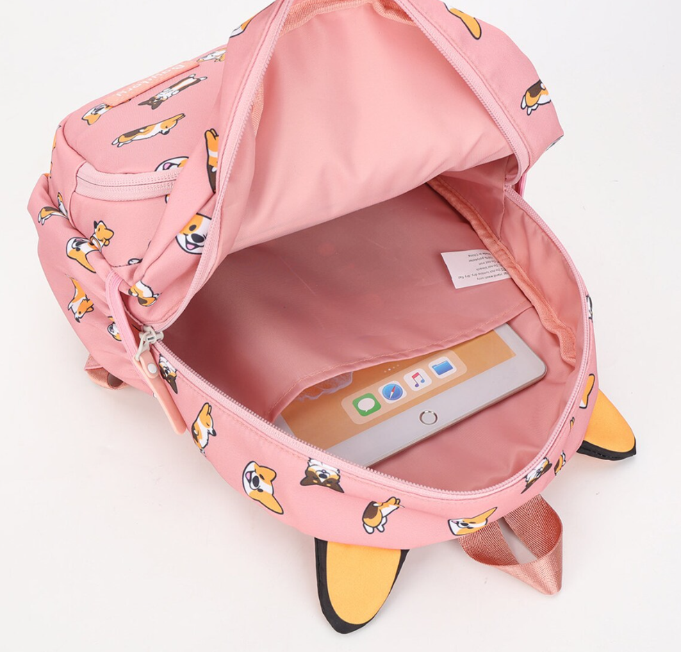The corgi backpack is perfect for toddlers going to school or for daily use. The adjustable straps provide support and comfort. Its durable material is recommended for everyday use, day trips, travel, hiking, school, and camping.
